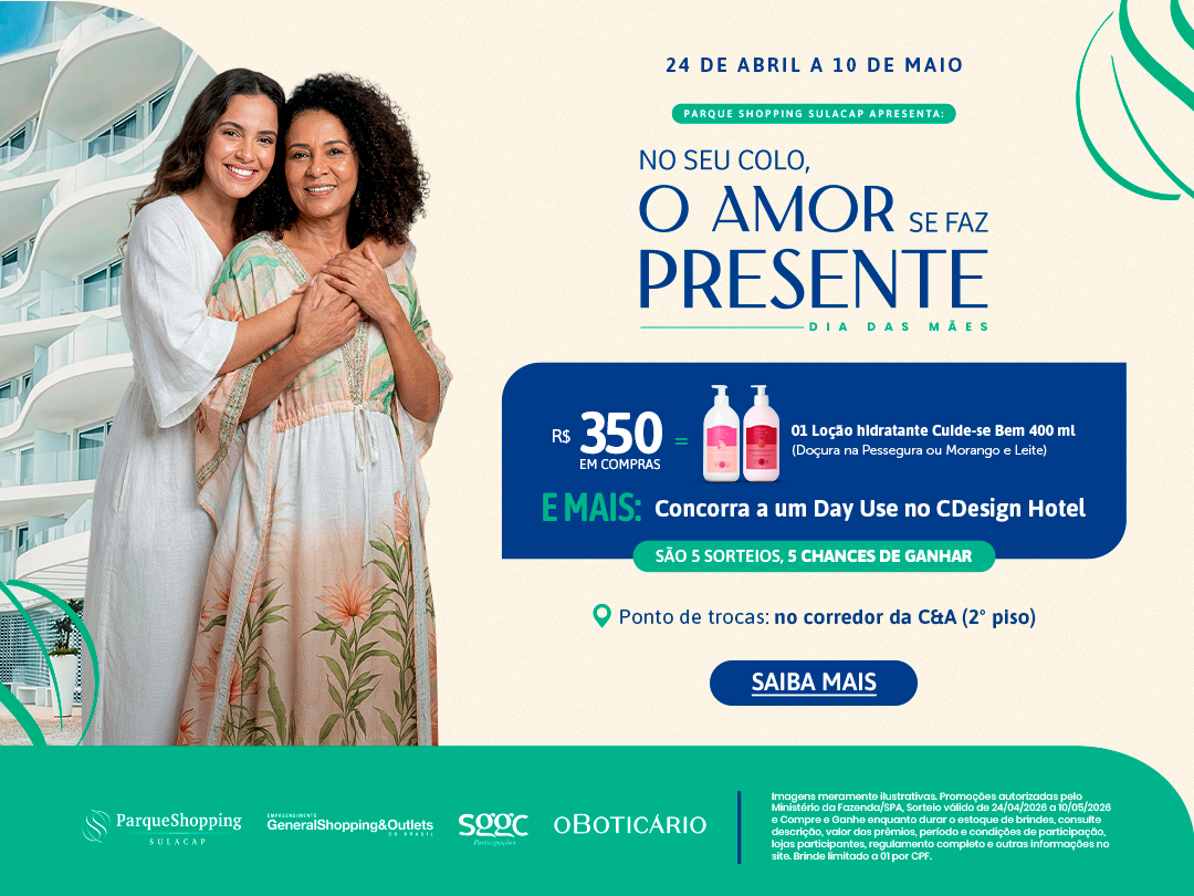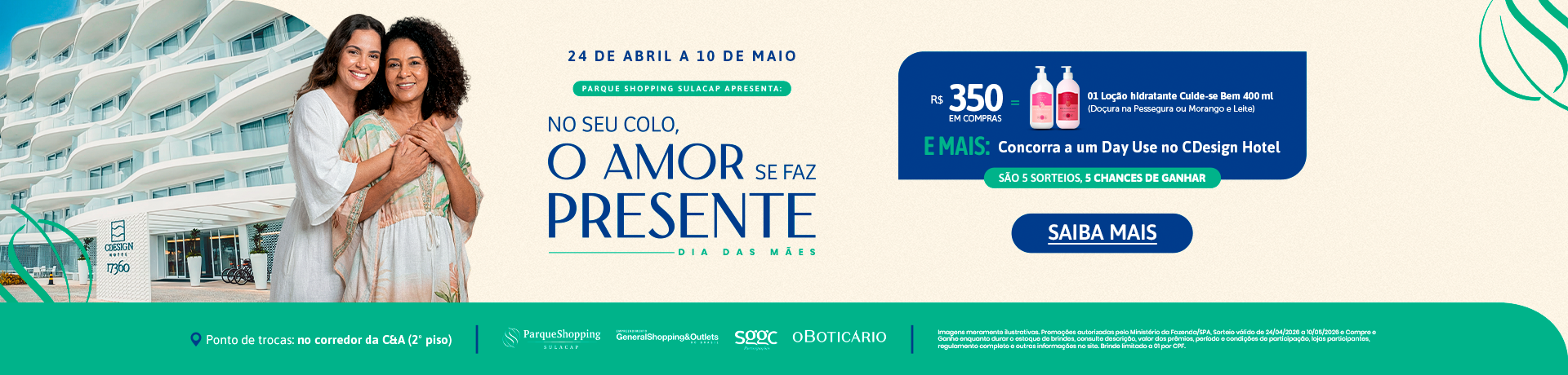 O Parque Shopping Sulacap é a casa das grandes marcas. São mais de 150 lojas para você fazer as suas compras e favoritar a que mais te surpreender. Difícil mesmo é não amar cada uma delas.